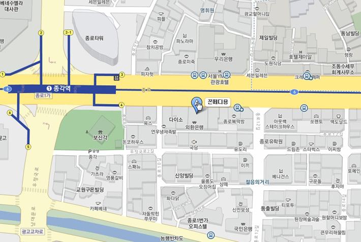 [ã¾Æ°¡´Â±æ] 1È£¼± Á¾°¢¿ª 4¹øÃⱸ ¶Ç´Â Á¾°¢ÁöÇϼîÇμ¾ÅÍ 10¹øÃⱸ·Î ³ª¿À¸é µµº¸ 1ºÐ°Å¸®¿¡ À§Ä¡. ·Ôµ¥¸®¾Æ ¹Ù·Î ¿·.