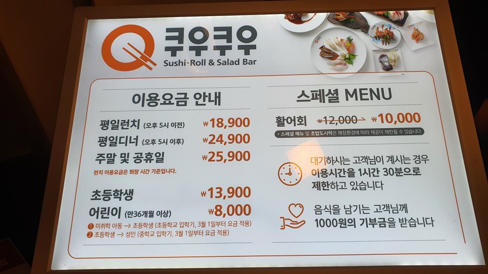 ÀÌ¿ë¿ä±ÝÀº ÆòÀÏ·±Ä¡´Â 18900¿ø, µð³Ê´Â 24900¿ø, ÁÖ¸»À̳ª °øÈÞÀÏ¿£ 25900¿øÀÌ¿¡¿ä. ÃʵîÇлýÀº 13900¿øÀ̰í, ¾î¸°ÀÌ´Â 8000¿øÀÔ´Ï´Ù.