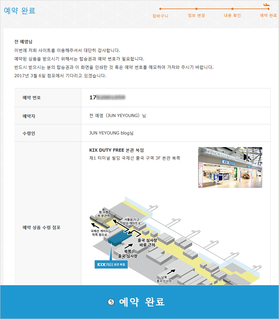 µÎ¹øÂ°, ¿¹¾à ¿Ï·á ȸ鿡 Ç¥½ÃµÈ »óǰ ¼ö·É Á¡Æ÷ Á¤º¸¿Í ¿¹¾à¹øÈ£¸¦ È®ÀÎÇϼ¼¿ä.