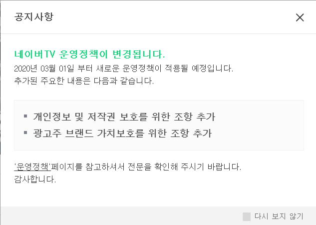 ³×À̹öTV ¿î¿µÁ¤Ã¥ º¯°æ»çÇ×-3¿ù 1ÀϺÎÅÍ(°³ÀÎÁ¤º¸/ÀúÀÛ±Ç/±¤°íÁֺ귣µå)
