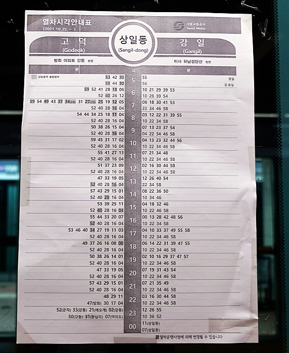 ¿À´ÃÀº Á¦°¡ »ì°í ÀÖ´Â °í´öµ¿¿¡ À§Ä¡ÇÑ ÁöÇÏö¿ª 5È£¼± »óÀϵ¿¿ª ½Ã°£Ç¥¸¦ ¾Ë·Áµå¸®¸é¼ 5È£¼± Çϳ² ¹Ì»ç¿ª/Çϳ²°Ë´Ü»ê¿ª ½Ã°£Ç¥¿Í