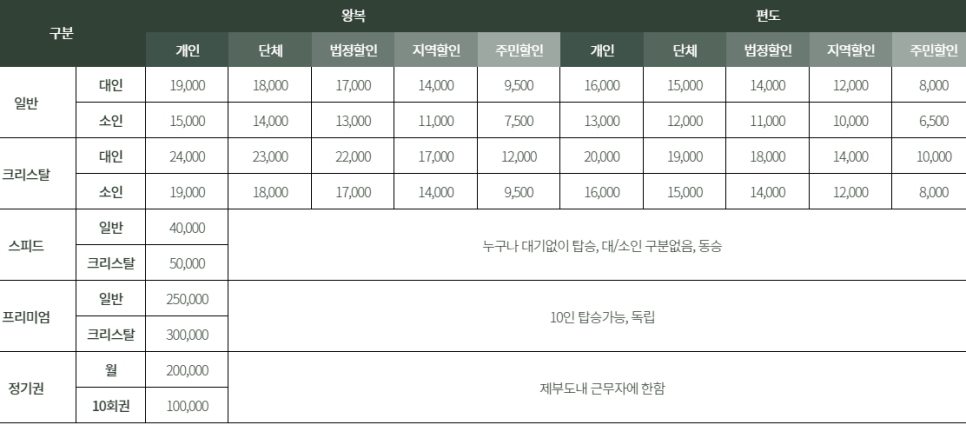ÀÏ¹Ý ¿Õº¹¿ä±ÝÇ¥: ´ëÀÎ-19,000¿ø, ¼ÒÀÎ-15,000¿ø