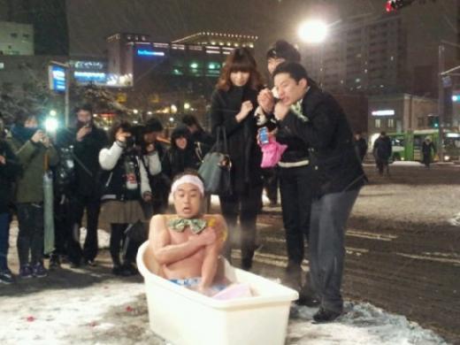 °ø°³µÈ »çÁø¿¡¼ ±è´ëÈñ´Â ´«ÀÌ Ã¤ ³ìÁö ¾ÊÀº Ãß¿î ³¯¾¾¿¡µµ ºÒ±¸, »óÀǸ¦ Å»ÀÇÇÑ Ã¤ ¿åÁ¶¿¡¼ ¸ñ¿åÀ» Çϰí ÀÖ´Ù. Áö³ª°¡´ø ½Ã¹ÎµéÀº Ä«¸Þ¶ó¸¦ µé°Å³ª ÀÌ »óȲÀÌ ½Å±âÇÑ µí ÃÄ´Ùº¸°í ÀÖ´Ù.