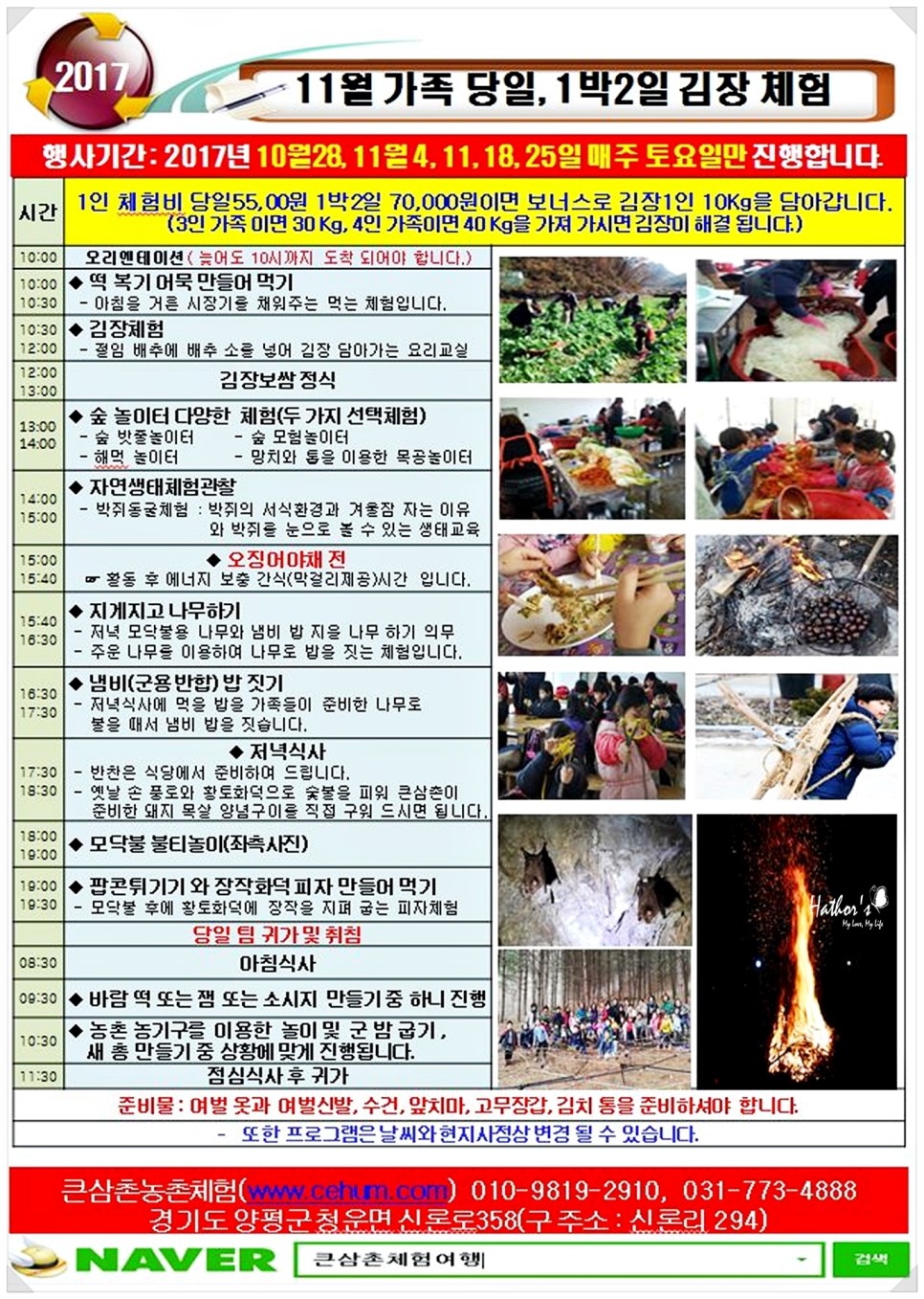 Å«»ïÃ̳׵µ ±èÀåüÇèÀ» 10¿ù 28ÀÏÀ» ½ÃÀÛÀ¸·Î 11¿ù 4ÀÏ, 11ÀÏ, 18ÀÏ, 25ÀÏ ¸ÅÁÖ Åä¿äÀϸ¸ ÁøÇàÇØ¿ä.