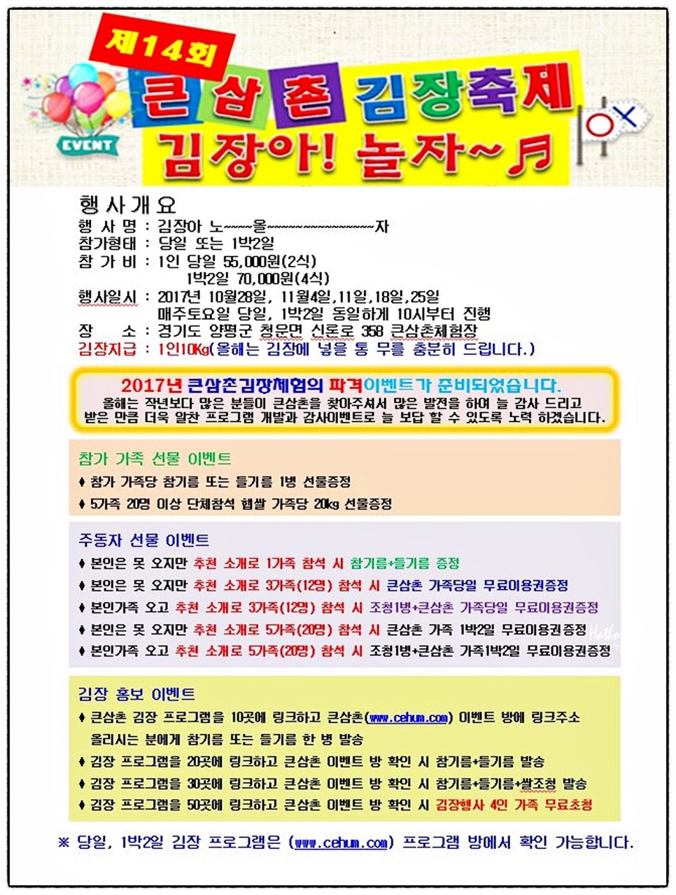 ´çÀÏÀ̳ª ÀϹÚÀ¸·Î Áñ±â°í °³ÀÎ´ç ±èÄ¡ 10Kg¾¿ ´ã°¡°¡´Â Å«»ïÃÌ ±èÀåüÇèÀº °¨»ç À̺¥Æ®·Î