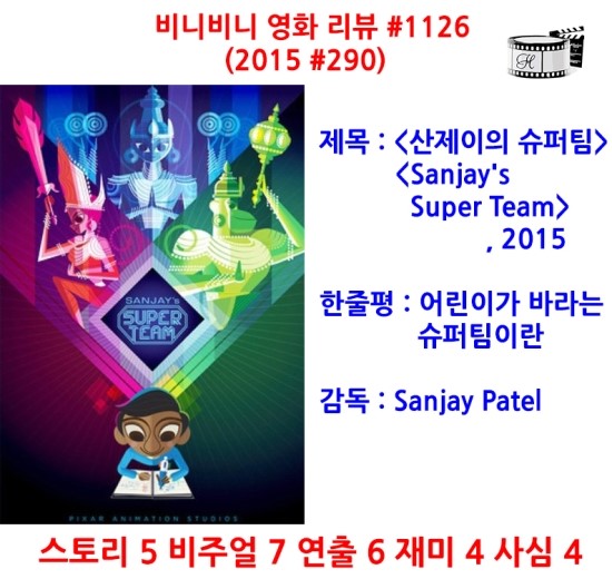 ¿µÈ <»êÁ¦ÀÌÀÇ ½´ÆÛÆÀ>(¿øÁ¦: Sanjay's Super Team)Àº µðÁî´Ï¿Í ÇÈ»çÀÇ <±Â ´ÙÀ̳ë> ¿µÈ Àü¿¡ ³ª¿À´Â ´ÜÆí ¿µÈÀÔ´Ï´Ù. À̹ø ´ÜÆíÀº Å« ¸Å·ÂÀÌ ¾ø½À´Ï´Ù. ¾î¸°À̰¡ ÀÚ½ÅÀÌ ÇÏÁö ¸øÇÏ´Â °ÍÀ» »ó»óÀ» ÅëÇØ ÇØ¼ÒÇÏ´Â ³»¿ëÀε¥, ±× »ó»óÀ» ¿µÈ¿¡¼ º¸´Ù È·ÁÇÏ°Ô Ç¥ÇöÀ» ÇÏ·Á°í ÇßÁö¸¸ ºÎÁ·ÇÑ ºÎºÐÀÌ ÀÖ½À´Ï´Ù. ¶ÇÇÑ ¿µÈ¿¡¼ ³ª¿À´Â ½ÅµéÀÇ ¸ð½ÀÀº ¸¶Ä¡ °ÔÀÓó·³ ´À²¸Áö°Ô Ç߱⠶§¹®¿¡ ±× ºÎºÐÀÌ ´õ¿í °ÇØÁ³´Ù°í ÇÒ ¼ö ÀÖ½À´Ï´Ù. °á±¹ ´ÜÆíºÎÅÍ ¿µÈ´Â Å« ¸Å·ÂÀ» ÁÖÁö ¸øÇÏ°í ½ÃÀÛÇ߱⠶§¹®¿¡ º»ÆíÀÎ <±Â ´ÙÀ̳ë>µµ Å« ¸Å·ÂÀ» ´À³¢Áö ¸øÇß´Ù°í ÇÒ ¼ö Àִµ¥, ÁøÂ¥ À̹ø ´ÜÆíÀº °ÔÀÓ ¿ÀÇÁ´×ó·³ ´À²¸Áø °ÍÀÌ Àú»ÓÀÏÁö ¸ð¸£°Ú½À´Ï´Ù. ¿µÈ°¡ ÁÖ°íÀÚ ÇÏ´Â ¸Þ½ÃÁö´Â ºÐ¸í ÀüÇØÁö±â´Â ÇßÁö¸¸ ±× ¿ª½Ã Å« È¿°ú¸¦ ÁÖÁö ¸øÇÑ °Í °°Àº ´À³¦µµ µé¾ú½À´Ï´Ù.