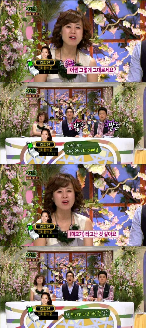 ¸¶ÀÌÆ¼¸¶¿ì½º »óÃßÀÇ Áú¹®À» ¹Þ¾Æ ÄûÁ Ǭ ±èÈñ¼±Àº ¡°¾Æ±â¸¦ ³º¾Ò´Âµ¥ ¾îÂÀ ±×´ë·Î¼¼¿ä¡±¶ó´Â ¹Ú¹Ì¼±ÀÇ Âù»ç¿¡ ¡°¾Æ´Õ´Ï´Ù. ¹Ì¼± ¾ð´Ï°¡ ´õ ¿¹»µ¿ä¡±¶ó°í ¸»ÇØ ³²ÀÚ MCµéÀÇ °øºÐ(?)À» »ò´Ù.