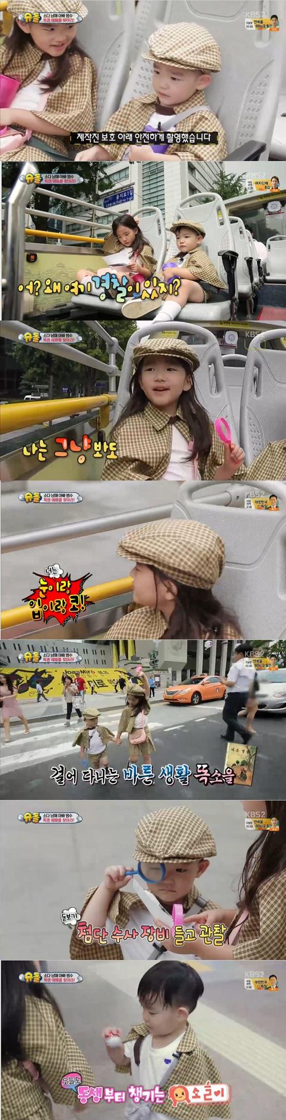 7ÀÏ ¹æ¼ÛµÈ KBS 2TV '½´ÆÛ¸ÇÀÌ µ¹¾Æ¿Ô´Ù'¿¡¼± À̹ü¼öÀÇ ÀÚ³à ¼ÒÀ»¡¤´ÙÀ» ³²¸Å°¡ ¿¡Æä ÀÎÇüÀ» ã´Â ¹Ì¼ÇÀ» ¼öÇàÇÏ´Â ¸ð½ÀÀ» ´ã¾Ò´Ù. À̳¯ ¼ÒÀ»¡¤´ÙÀ» ³²¸Å´Â ¾Æºü À̹ü¼ö ¾øÀÌ µÑÀ̼ ±¤È¹®¿¡ ÀÖ´Â ¿¡Æä¸¦ ã¾Æ³ª¼¹´Ù. ¹ö½º¸¦ Ÿ°í ±¤È¹®¿¡ µµÂøÇßÁö¸¸, ¿¡Æä°¡ ÀÖ¾î¾ß ÇÒ °÷¿£ ÆíÁö¸¸ ÀÖ¾ú´Ù. 5È£¼± ÁöÇÏöÀ» Ÿ°í, ´Ù½Ã ¿¡Æä¸¦ ã¾Æ³ª¼± ¼ÒÀ»°ú ´ÙÀ» ³²¸Å. ÀÌ °úÁ¤¿¡¼ ¼ÒÀ»ÀÌ´Â µ¿»ý ´ÙÀ»À̸¦ ì±â¸ç ´©³ª·Î¼ ÀÇÁ£ÇÑ ¸ð½ÀÀ» º¸¿©Áá´Ù.