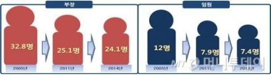 Çѱ¹°æ¿µÀÚÃÑÇùȸ(ÀÌÇÏ °æÃÑ)´Â Àü±¹ 219°³ ±â¾÷À» ´ë»óÀ¸·Î ¡®2014³â ½ÂÁø¡¤½Â±Þ°ü¸® ½ÇÅÂÁ¶»ç¡¯¸¦ ½Ç½ÃÇÑ °á°ú, ´ëÁ¹ ½ÅÀÔ»ç¿øÀÌ ÀÓ¿øÀ¸·Î ½ÂÁøÇÏ´Â ºñÀ²Àº 0.74%·Î Á¶»çµÆ´Ù°í 2ÀÏ ¹àÇû´Ù. ÀÔ»çÀÚ 1000¸í Áß ÀÓ¿ø±îÁö »ì¾Æ³²´Â »ç¶÷Àº ´Ü 7.4¸íÀ̶ó´Â Àǹ̴Ù. ÀÌ ¼öÄ¡´Â 2005³â 12¸í¿¡¼ 2011³â 7.9¸í, ¿ÃÇØ 7.4¸íÀ¸·Î °¥¼ö·Ï °¨¼Ò¼¼´Ù.