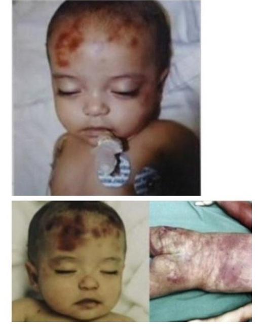 ¾ÆÀÌÀÇ ¸ö¿¡ 13°³ÀÇ ±ú¹°¸° ÀÚ±¹ÀÌ ÀÖ¾ú°í, Àü½ÅÀÌ ¸ØÀ¸·Î µÚµ¤Çô ÀÖÀ½