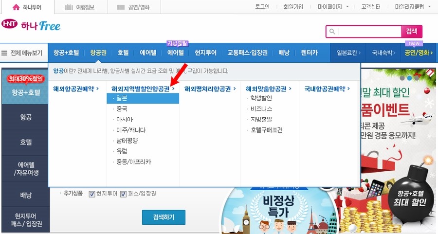 ÇϳªÇÁ¸® »çÀÌÆ®¿¡¼ Ç×°ø±Ç > ÇØ¿ÜÁö¿ªº° ÇÒÀÎÇ×°ø±Ç > ÀϺ» À¸·Î µé¾î°¡´Ï ¾ÆÁÖ ½Ñ Ç¥µéÀÌ ¸¹ÀÌ º¸¿´¾î¿ä.