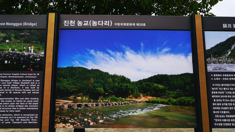 ÀÌ ´Ù¸®´Â ±¼Æ¼¸¶À»(±¸°î¸®) ¾ÕÀ» È帣´Â ¼¼±Ýõ¿¡ ³õÀÎ °ÍÀ¸·Î ³õ´Ù¸®¶ó°í ºÒ¸®°í Àִ Ư¼öÇÑ ¸ð¾çÀÇ µ¹´Ù¸®ÀÔ´Ï´Ù. ¹®Çå¿¡ µû¸£¸é '°í·ÁÃÊ ÀÔÀ屺ÀÌ ¼¼¿üÀ¸¸ç ºÓÀº ¹°·Î½á À½¾çÀ» ¹èÄ¡ÇÏ¿© 28¼ö¿¡ µû¶ó 28ÄÀ¸·Î Áö¾ú´Ù°í ±â·ÏµÇ¾î ÀÖ½À´Ï´Ù. ÃÑ ±æÀÌ´Â 95m Á¤µµ·Î½á »ç·Â¾ÏÁúÀÇ µ¹À» ¹°°í±â ºñ´Ãó·³ ½×¾Æ ¿Ã·Á ±³°¢À» ¸¸µç ÈÄ ±ä »óÆÇ¼®À» ¾ñÀº µ¹´Ù¸®ÀÔ´Ï´Ù. À帶¿¡µµ À¯½ÇµÊÀÌ ¾øÀÌ °ß°íÇÏ°Ô À¯ÁöÇØ ±×µ¿¾È ¿¹°¡ ¾ø´Â Ư¼öÇÑ ±¸Á¶¹°ÀÔ´Ï´Ù. ÁøÃµ ³ó±³´Â ±¹ÅäÇØ¾çºÎ¿¡¼ ÁÖ°üÇÑ Çѱ¹ÀÇ ¾Æ¸§´Ù¿î ±æ 100¼±, Çѱ¹ÀÇ ¾Æ¸§´Ù¿î ÇÏõ 100¼±¿¡ ¼±Á¤µÇ¾î ÀÚ¿¬ °æ°üÀ¸·Îµµ ¿ì¼ö»óÀ» ÀÎÁ¤¹ÞÀº °ü±¤¸í¼ÒÀÔ´Ï´Ù.