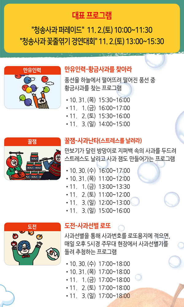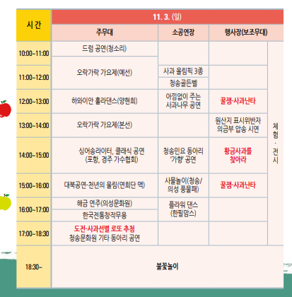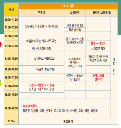 2018³â »ç°úÃàÁ¦ dz°æÀä. ¾ÆÀ̵é°ú ¾î¸¥µé ¸ðµÎ Áñ±æ ¼ö ÀÖ´Â ´Ùä·Î¿î Çà»ç°¡ ÀÖ°í À̹ø ÇÁ·Î±×·¥Àº 10¿ù 30ÀϺÎÅÍ ÆîÃÄÁ® 11¿ù 3ÀϱîÁö ¿¸®´Âµ¥¿ä. üÇèÇÁ·Î±×·¥À» ÇÇ·ÔÇØ¼ °ø¿¬µµ ¸¹¾Æ À¯¸í°¡¼öµéÀÇ °ø¿¬À» Á÷Á¢ º¸°í Áñ±æ ¼ö ÀÖ½À´Ï´Ù.