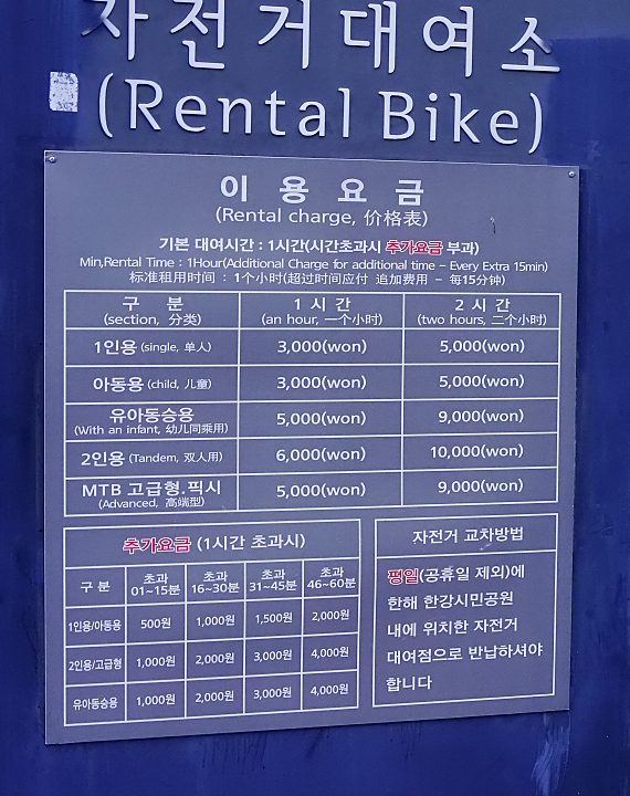 ÀÚÀü°Å ´ë¿©Á¡µµ ¿î¿µÇϰí ÀÖ¾î¼ Ä¿Çà ÀÚÀü°Å ¿Ü ¾î¸°ÀÌ ÀÚÀü°Å¸¦ ´ë¿©Çϰí ÀÖ½À´Ï´Ù. ÀÚÀü°Å ´ë¿© ÀÌ¿ë ¿ä±ÝÀº 1Àοë:3,000¿ø ¾Æµ¿¿ë: 3,000¿ø 2Àοë:6,000¿ø, MTB °í±ÞÇü ÇȽÃ:5,000¿ø ½Ã°£ Ãʰú½Ã Ãß°¡¿ä±ÝÀÌ ¹ß»ýµË´Ï´Ù.