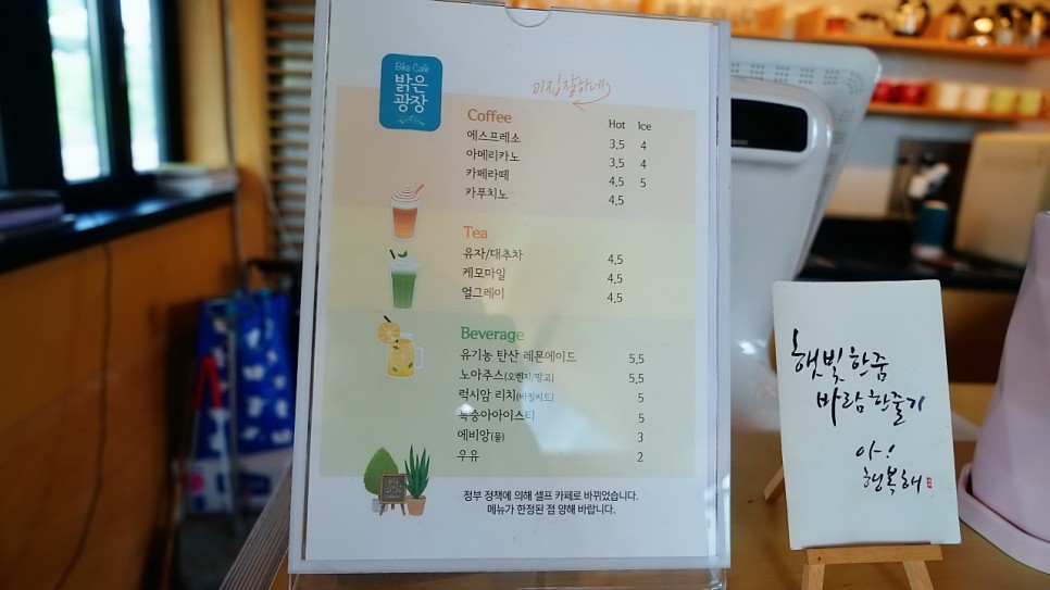 ºÏÇѰ ÀÚÀü°Å ÄÚ½º ½ÃÀÛÁ¡¿¡ ÀÖ´Â ¹àÀº±¤Àå Ä«Æä´Â ÀÚÀü°Å ¸¶´Ï¾ÆµéÀÌ ¸¹ÀÌ ÀÌ¿ëÇÏ´Â °ø°£À¸·Î Ä¿ÇÇ¿Í À½·á ¿Ü¿¡µµ »§À» ÁغñÇØ¼ °£´ÜÇÑ ¿ä±â¸¦ ÇÒ ¼ö ÀÖµµ·Ï Çß½À´Ï´Ù.